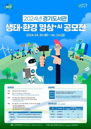 [한국뉴스타임=편집국] 경기도가 ‘미래 100년과 생태·환경을 잇다’를 주제로 ‘2024 경기도서관 생태·환경 영상+AI 공모전’을 4월 30일부터 6월 14일까지 개최한다.
