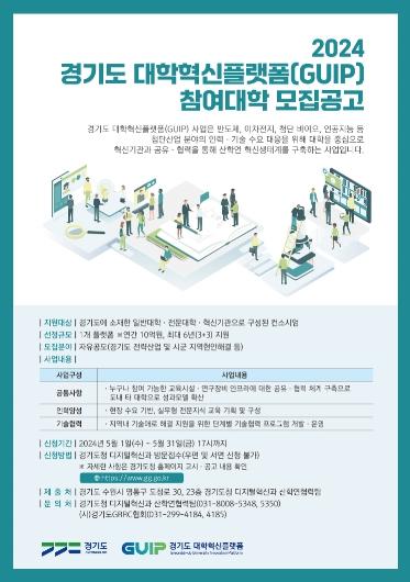 [한국뉴스타임=편집국] 경기도는 1일 첨단업종 분야 실무형 인재 양성과 기술 경쟁력 확보에 어려움을 겪는 중소기업을 밀착 지원하기 위한 경기도형 ‘대학혁신플랫폼’ 선정 계획을 공고했다.