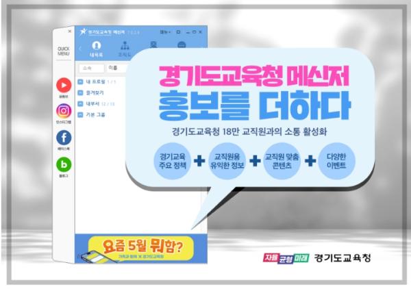 도교육청은 행정기관 최초로 메신저에 홍보 콘텐츠를 게시할 수 있는 홍보 공간(배너)을 신설했다. 이는 경기교육 정책의 실행 주체인 교직원을 대상으로 정책홍보를 강화함으로써 추진동력을 확보하고 경기교육에 대한 이해와 공감을 확산하기 위해서다.
