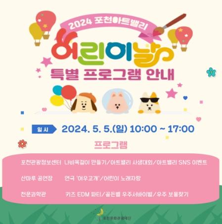 포천문화관광재단 이중효 대표이사는 “어린이날을 맞아 포천아트밸리에서 가족들과 함께 즐길 수 있는 특별한 프로그램들을 마련했다. 이번 프로그램이 어린이와 가족에게 특별한 추억을 선사하길 기대한다”고 말했다.