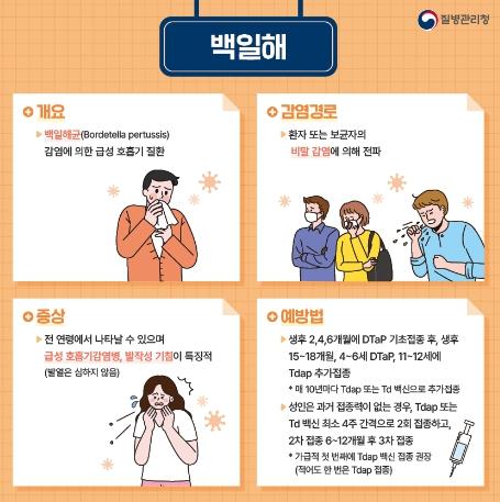 코로나 팬데믹 종식 후 일상생활로 복귀하며 마스크 착용이 해제된 상황에서, 백일해가 전국적으로 유행하기 시작해 교육시설 등 집단생활시설 중심으로 환자가 발생하고 있다.