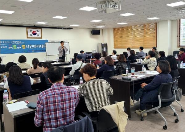 이번 교육은 권역별 거점(동, 서, 남, 북)에서 총 4회에 걸쳐 진행됐으며, 읍면동협의체 위원을 비롯한 시민 시장들과 함께 ‘더 나은 공동체 만들기’라는 주제로 평소 마을 활동의 의미를 확인하는 시간을 가졌다.