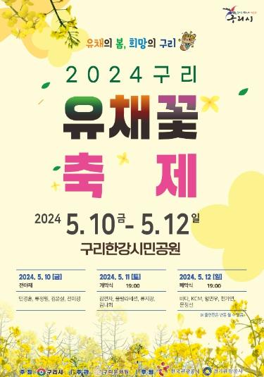 [한국뉴스타임=편집국] 구리시는 5월 가정의 달을 맞아 5월 10일부터 12일까지 3일간 구리한강시민공원에서 온 가족이 함께 즐길 수 있는 ‘2024 구리 유채꽃 축제’를 개최한다.