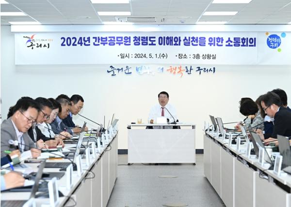 [한국뉴스타임=편집국] 구리시는 5월 1일 종합청렴도 개선을 위한 2024년 반부패·청렴도 향상 추진계획을 수립하고 이를 공유하기 위해 ‘간부공무원 소통회의’를 개최했다.