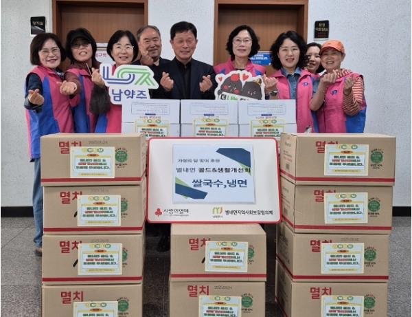 [한국뉴스타임=편집국] 남양주시 별내면 골드생활개선회와 생활개선회는 별내면사무소에서 가정의 달을 맞이하여 쌀국수와 냉면 전달식을 진행했다.