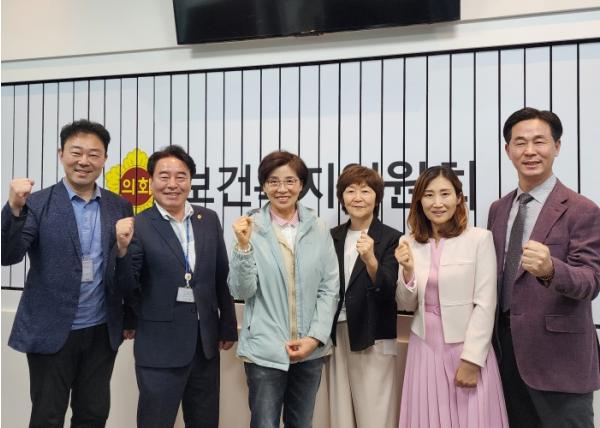이날 정담회는 김동규 의원이 대표발의한 '경기도 저소득계층 노인 간병비 지원 조례'의 시행 이후, 경기도 간병비 지원 방안 및 간병비 문제 해결을 위한 의견을 청취하기 위해 진행됐다. 김동규 의원, 김미숙 의원(보건복지위원회, 더불어민주당, 군포3)과 노동훈 홍보위원장을 비롯한 대한요양병원협회 관계자 4명이 참석했다.