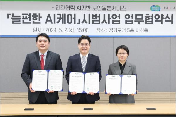 경기도는 해당 내용을 담은 ‘늘편한 AI케어’를 시범적으로 추진하기 위해 NHN-와플랫주식회사, 경기도재가노인복지협회와 업무협약을 2일 체결했다.