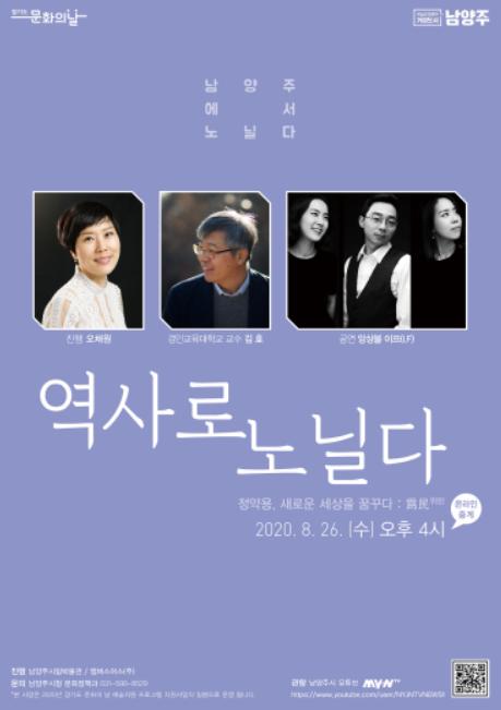 한편, 경기도 문화의 날 「남양주에서 노닐다-역사로 노닐다」는 남양주시 유튜브 채널MY-NTV (https://www.youtube.com/user/NYJNTVNEWS1)을 통해 생중계 시청 및 다시보기가 가능하며, 기타 문의사항은 문화정책과(☎031-590-8529)로 문의하면 된다.