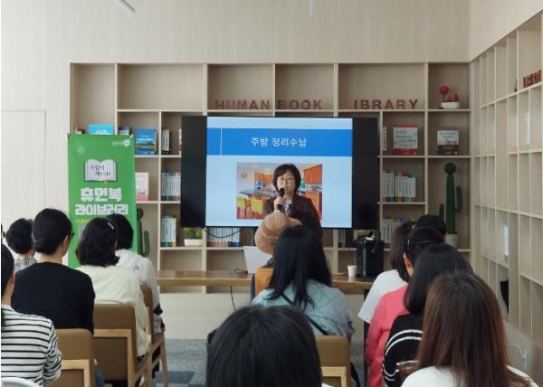 이번 ‘알면 쉬워지는 정리수납’ 강좌는 시민 강사로 활동하고 있는 최영란 휴먼북이 강사로 나서 ‘우리집도 다이어트가 필요하다’라는 주제로 직접 시연을 하며 정리수납을 설명했다.