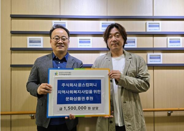 [한국뉴스타임=편집국] 주식회사 윤스컴퍼니는 지난 2일 어린이날을 맞이해 관내 취약계층을 위한 150만 원 상당의 온누리상품권을 남양주시사회복지관 서부희망케어센터에 전달했다.