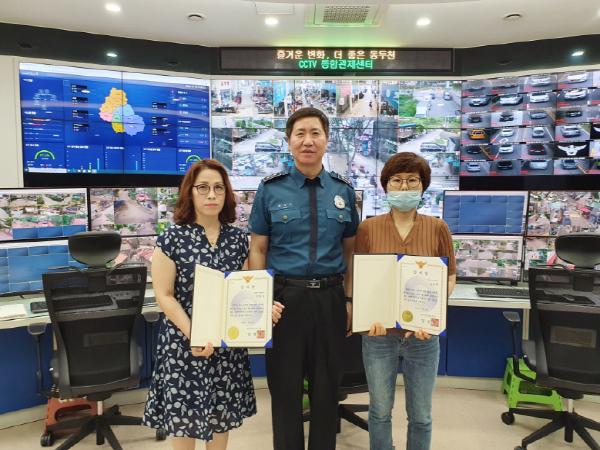 [KNT한국뉴스타임] 동두천시는 지난 7월 31일 동두천시 CCTV 통합관제센터에서 근무 중 자전거 절도범 검거에 기여한 관제요원 김??(42세,여), 안??(43세,여) 씨 2명에게 동두천경찰서장(김영진)의 감사장을 동두천경찰서 생활안전과장(최병구)이 전수했다고 밝혔다.