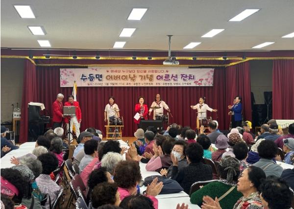[한국뉴스타임=편집국] 수동면 노인후원회는 지난 9일 물골안 다목적회관에서 어버이날 기념‘어르신 잔치 행사’를 성황리에 개최했다.