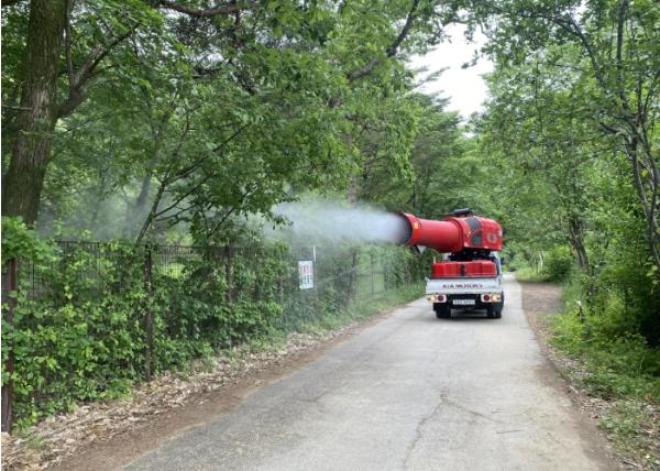 한편, 농업기술센터에서는 관내 농가를 대상으로 약제를 공급할 뿐만 아니라 드론을 활용한 항공방제 및 광역방제를 실시하여 돌발해충을 알맞은 시기에 방제할 수 있도록 지원하고 있다.