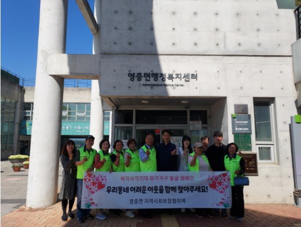 공공위원장인 조대룡 영중면장은 “복지 사각지대를 해소하기 위해서는 이웃의 관심이 절실하다. 한마음 한뜻으로 캠페인에 참여해 주신 지역사회보장협의체 위원분들께 감사드리며, 영중면 행정복지센터 또한 대상자에게 신속히 복지서비스가 제공될 수 있도록 최선을 다하겠다”고 말했다.