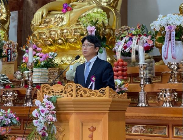 수진사 주지 남정스님은 법어를 통해 “마음은 행동하게 하는 수레바퀴와 같다. 그렇기에 마음이 항상 맑고 정돈돼 있어야 우리의 삶을 바르고 선한 방향으로 이끌 수 있다”라며 “여러분 모두 부처님의 자비와 광명 아래 가르침대로 평온하고 깨끗한 연꽃처럼 피어나길 기원한다”라고 말했다.