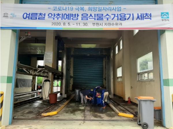 이에 부천시에서는 코로나19 극복 희망일자리 사업에 참여하는 근로자를 선발해, 오는 8월 5일부터 11월 10일까지 약 3개월 동안 관내 청소업체 차량으로 음식물 전용 수거용기를 자원순환센터로 실어올 예정이다. 이후 고압세척기와 EM 발효액을 이용해 깨끗하게 세척한 뒤 파손된 부분을 수리하고 부식된 용기는 교체하여 다세대 주택과 상가에 재배치할 예정이다.