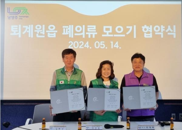 [한국뉴스타임=편집국] 남양주시 퇴계원읍 주민자치회와 새마을지도자협의회, 새마을부녀회는 지난 14일 퇴계원읍사무소에서 ‘폐의류 모으기 협약’을 체결했다.