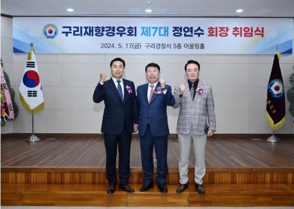 이 자리에서 백경현 시장은 “제7대 회장으로 새롭게 취임한 정연수 회장님께서 탁월한 친화력을 바탕으로 앞으로 구리재향경우회의 유대 강화는 물론, 구리시의 범죄 예방과 치안 활동에도 적극 노력해 주시리라 확신하며, 취임을 진심으로 축하드린다.”라고 전했다.