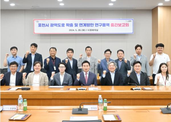 [한국뉴스타임=편집국] 포천시는 지난 28일 시정회의실에서 포천시 미래 도로망을 그리는 ‘포천시 광역도로 확충 및 연계방안 연구용역’ 중간보고회를 개최했다.