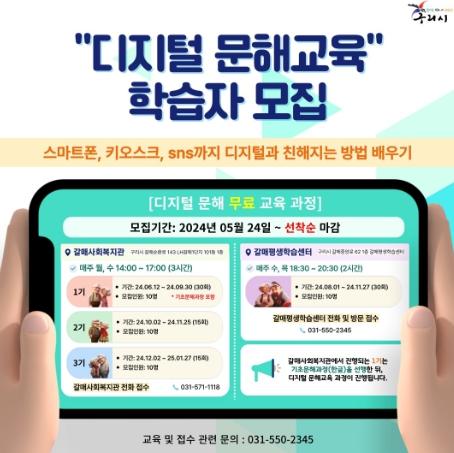 2024년 디지털 문해교육은 구리시에 거주하는 시민 중 디지털 사용에 어려움을 느끼는 성인 누구나 참여할 수 있으며, 디지털 기술의 발달에 따른 생활환경 변화에 적응할 수 있도록 일상생활 중심의 키오스크 주문 방법, 스마트폰 사용 방법, 온라인 결제 등 디지털 교육으로 진행된다.