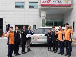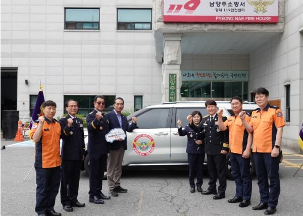 [한국뉴스타임=편집국] 남양주소방서는 30일 본서 주차장에서 의용소방대 연합회 순찰차량 전달식 행사를 진행했다.