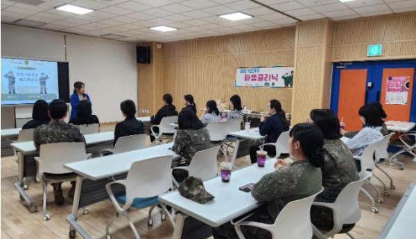 ‘군인 1인가구 대상 마음클리닉’은 1인가구 부사관 17명을 대상으로 미술치료 및 심리치료 활동을 통해 군생활에서 오는 스트레스 요인을 식별하고 효과적인 대처 전략을 개발하는데 도움을 주고자 진행했다. ‘아빠가 군인이라 행복해요’ 프로그램은 군인 10가족이 팀빌딩과 성격유형검사를 통한 자기 이해, 가족의 가치관과 비전 및 슬로건 정하기 등 다양한 활동을 통해 자신과 가족의 의미를 고민해 보는 시간으로 꾸며졌다.