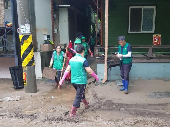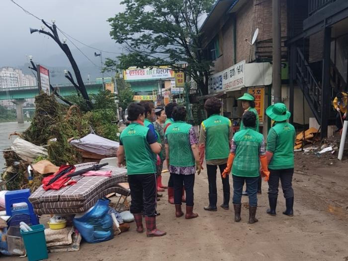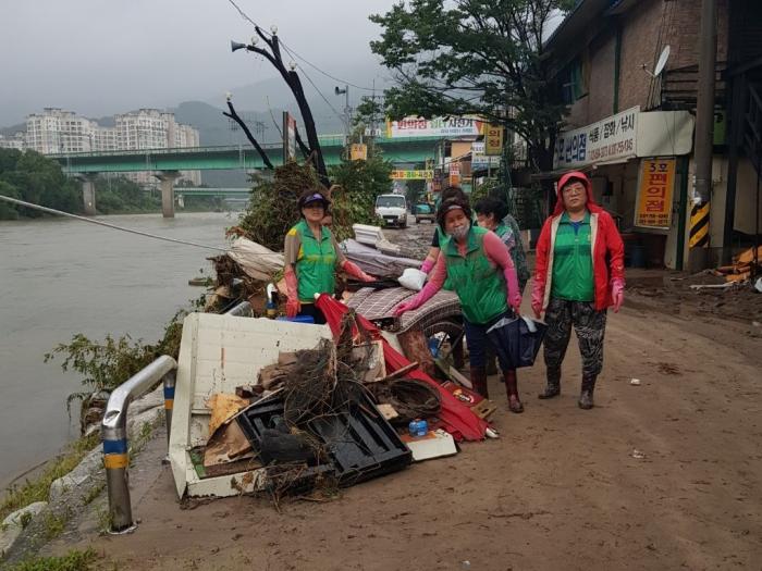 청평면새마을 남.여지도자 안전유원지 수해복구 구슬땀
