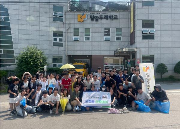 이날 행사에서 학생 및 교직원들은 밀알두레학교를 중심으로 이패동 568-1 일원의 버려진 각종 생활 쓰레기와 담배꽁초 등 무단투기 쓰레기 약 80Kg을 수거했다.