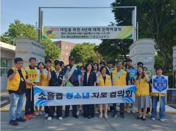 이번 캠페인에는 소흘읍 청소년지도협의회, 동남중학교 교장 및 교사, 소흘지구대, 소흘읍장을 비롯한 소흘읍행정복지센터 직원 등 30여 명이 참여했다. 참여자들은 등교하는 학생들에게 하절기 생활용품을 나눠주고 학업에 지친 학생들을 응원하며 학교폭력 예방을 독려했다.