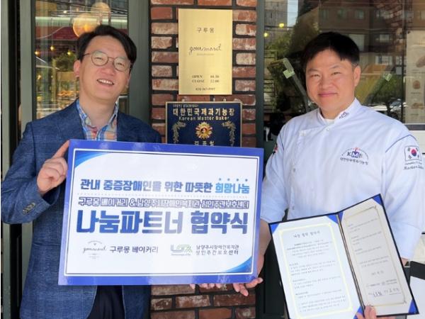 [한국뉴스타임=편집국] 남양주시장애인복지관 성인주간보호센터는 지난 13일 다산동에 소재한 베이커리 카페 ‘구루몽’과 ‘나눔 파트너’ 협약식을 진행했다. 역 취약계층에 온기와 희망을 전달하기 위한 후원을 담은