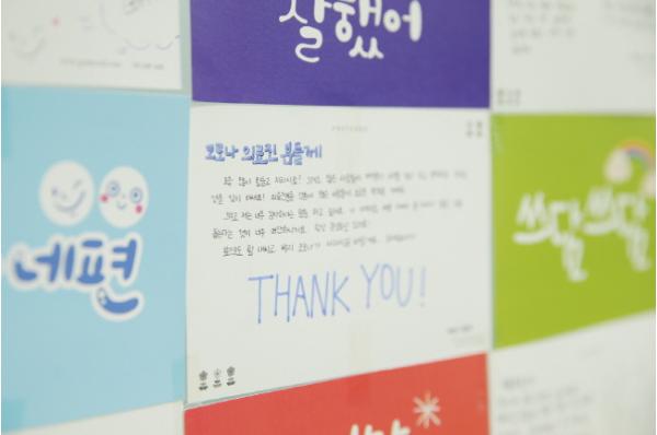 손 엽서에는 덕분에 챌린지 수어동작 그림과 코로나19 극복을 위해 헌신하는 의료진에 대해 고마움을 전달하는 내용을 담아 바쁘고 힘든 일상의 보건소 직원들에게 격려와 잔잔한 감동을 주고 있다.