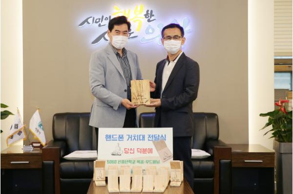 [KNT한국뉴스타임] 의왕시 5060 신중년학교 목공?우드버닝반(대표 이상훈)에서 시민들의 안전을 위해 고생하는 보건소 의료진과 직원들의 노고에 감사한 마음을 전하고자‘당신 덕분에’핸드폰 거치대 120개를 손수 만들어 5일의왕시에 전달했다.