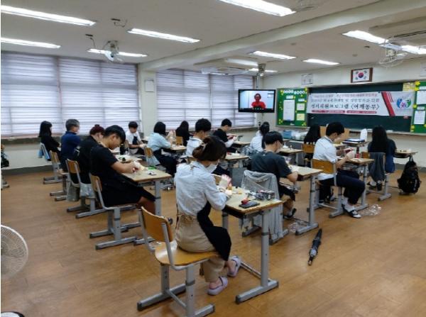 이번 체험프로그램은 학교 내 각반 교실에서 원목도마 만들기, 무드등 만들기 등이 화상을 이용한 비대면 방식으로 진행된다.