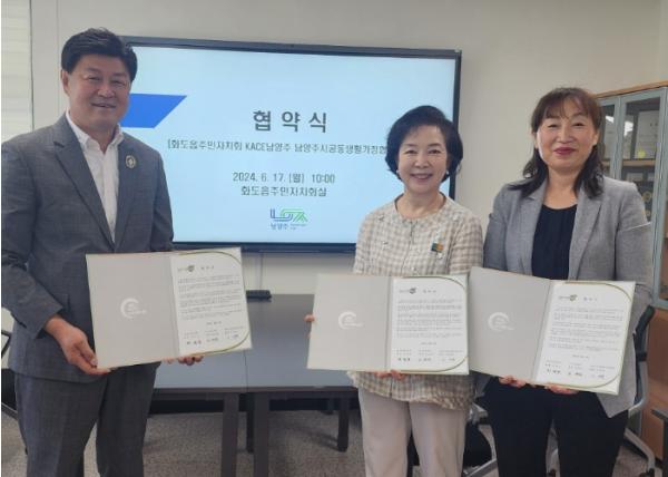 [한국뉴스타임=편집국] 남양주시 화도읍 주민자치회는 지난 17일 공동생활가정 종사자 및 아동을 위한 공익적 교육을 위해 남양주지역사회교육협의회(이하 KACE 남양주) 및 남양주시공동생활가정협의회와 업무 협약식을 개최했다.