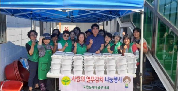 이날 행사에서는 부녀회 회원과 포천동 직원이 함께 열무김치를 담가 포천동 관내 경로당 및 취약계층 50여 가구에 전달하며 이웃사랑을 실천했다.