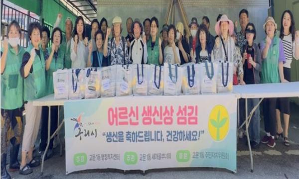 [한국뉴스타임=편집국] 구리시 교문1동 행정복지센터는 새마을부녀회 주관으로 6월 26일 관내 거주 독거 어르신 중 최근 생신을 맞으신 분들을 위한 생신상 차려드리기 행사를 진행했다.