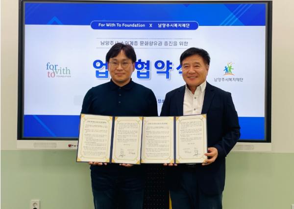 [한국뉴스타임=편집국] 남양주시복지재단은 지난 26일 글로벌 복지재단 ForWithToFoundation과‘남양주시 소외계층의 문화 향유권 증진’을 위한 업무협약을 체결했다.