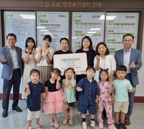 [한국뉴스타임=편집국] 시립진접어린이집은 지난 26일 관내 취약계층을 돕기 위한 후원금 70만 원을 진접읍 지역사회보장협의체에 기탁했다.