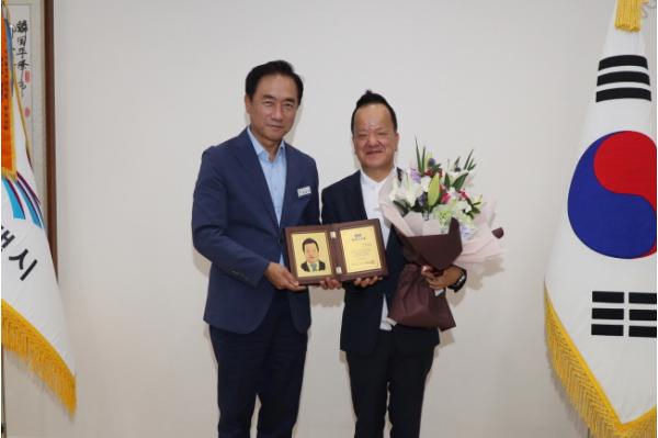 [KNT한국뉴스타임] 평택시가 5일 유현철 환 엔터테인먼트 대표를 평택시 명예시민으로 선정하고 명예시민증과 명예시민패를 수여했다.