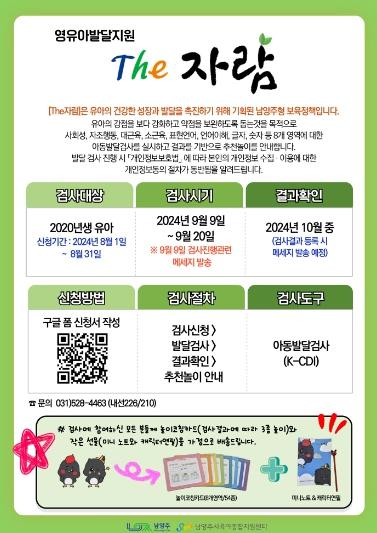 시는 아이 키우기 좋은 환경 조성을 위하여 다양한 사업을 추진하고 있으며, 지난해 시작한‘남양주형 영유아발달지원 The 자람’사업을 통해 작년 2019년생에 이어 올해 2020년생 관내 영유아를 대상으로 발달검사를 무료로 진행하고 있다.