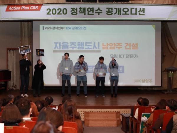 남양주시(시장 조광한)는 31일 시청 다산홀에서 직원들의 창의적 사고와 직무능력 향상을 위해 ‘2020년 프로젝트 정책연수 CSR 공개오디션’을 개최했다.