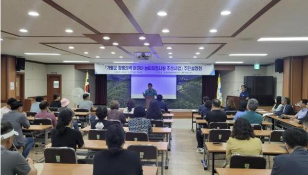 [한국뉴스타임=편집국] 가평군은 17일 ‘가평군 청평권역 어린이 놀이체험시설 조성사업 주민설명회’를 개최하고 설계공모 당선작 발표 및 주민 의견을 청취했다고 밝혔다.