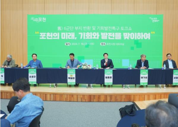 [한국뉴스타임=편집국] 포천시의회은 19일 포천시청 신관 2층 대회의실에서 열린 舊)6군단 부지반환 및 기회발전특구 토크쇼‘포천의 미래, 기회와 발전을 맞이하여’에 참석했다.