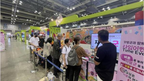 [한국뉴스타임=편집국] 가평군은 ‘제9회 대한민국 국제 관광박람회’에서 운영한 가평군 홍보관에 4일 동안 2,000여명이 방문해 큰 호응을 얻었다고 22일 밝혔다. 이번 박람회에는 총 1만9,250여명이 행사장을 방문했는데, 10명 중 1명꼴로 가평군 홍보관을 찾은 것이다.