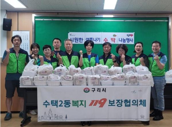 [한국뉴스타임=편집국] 구리시 수택2동 행정복지센터는 7월 23일 수택2동 복지119보장협의체와 함께 거동이 불편한 관내 취약계층 어르신 30세대에 수박과 빵, 파스 등을 전달하며 안부를 확인했다.