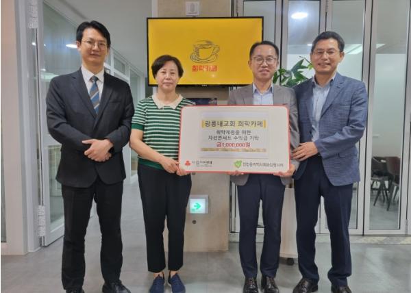 [한국뉴스타임=편집국] 남양주시 진접읍 소재 광릉내교회 희락카페는 지난 23일‘제11회 예술융합치유 희락 음악회’를 개최하고 모금된 수익금 100만원을 진접읍 지역사회보장협의체에 기탁했다.