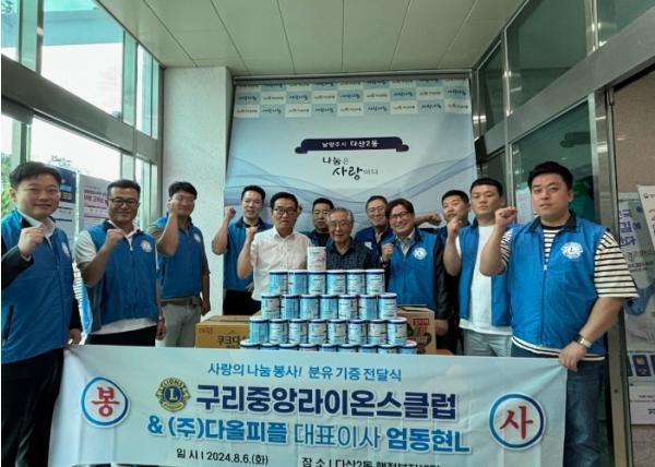 [한국뉴스타임=편집국] 구리중앙라이온스클럽은 6일 다산2동 경로당에 120만 원 상당의 특수 분유 50개를 전달했다.