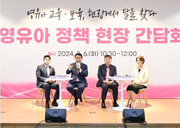 이날 간담회에는 백영현 포천시장과, 포천가평 국회의원 김용태 의원을 비롯해 유보통합 관련 교육부 관계자, 육아·보육 분야 전문가, 유치원 및 어린이집 관계자, 영유아 자녀를 둔 부모 등 100여 명이 참석하여 영유아 교육·보육 정책의 발전 방향을 논의하고 현장의 생생한 의견을 청취하는 시간을 가졌다.