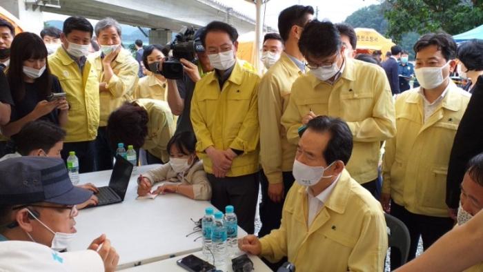 현장을 방문한 정세균 국무총리는 의암댐 사고와 관련 실종자 수색에 최선을 다할 것을 당부하는 긴급 지시를 시달했다.