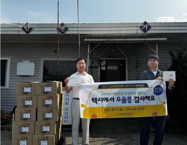 [한국뉴스타임=편집국] 포천시자살예방센터와 광복택시는 지난 12일 포천시 신북면 소재 광복택시 합자회사에서 ‘택시에서 우울증 검사해요’ 캠페인을 시작했다.